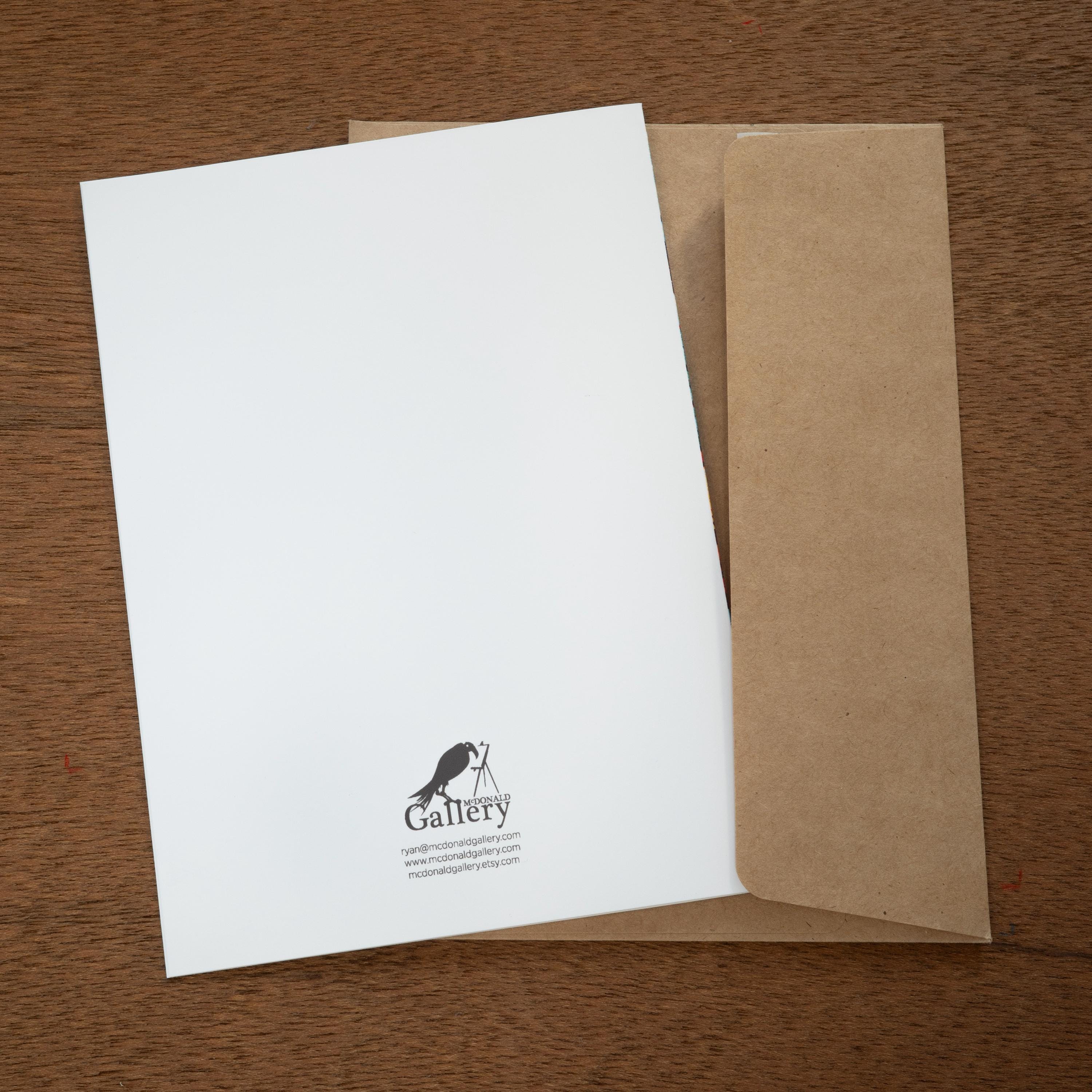 Cards packs include kraft paper envelopes with easy peel and stick closing strips. Cards and envelopes are packed in a sturdy kraft paper gift box with a clear window.