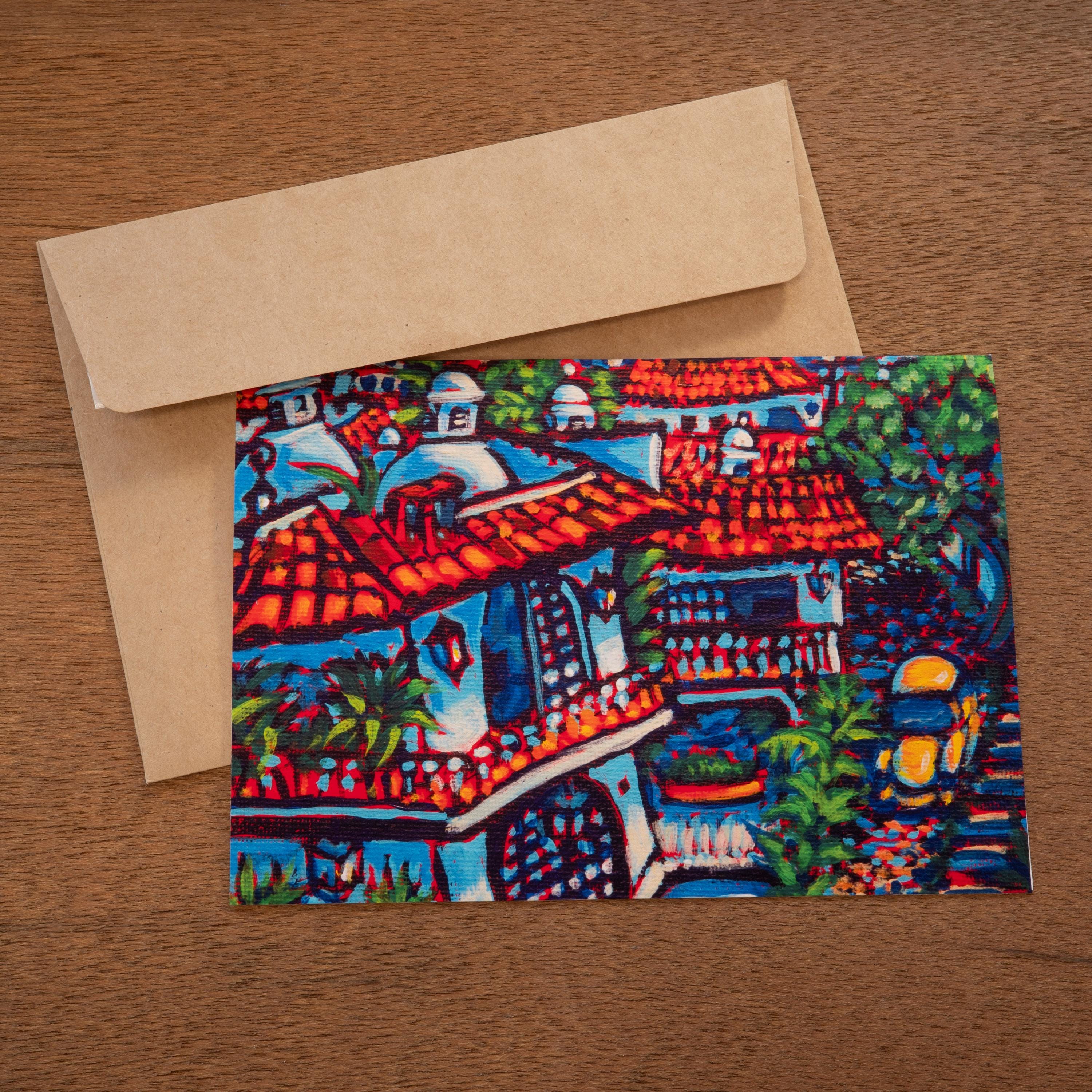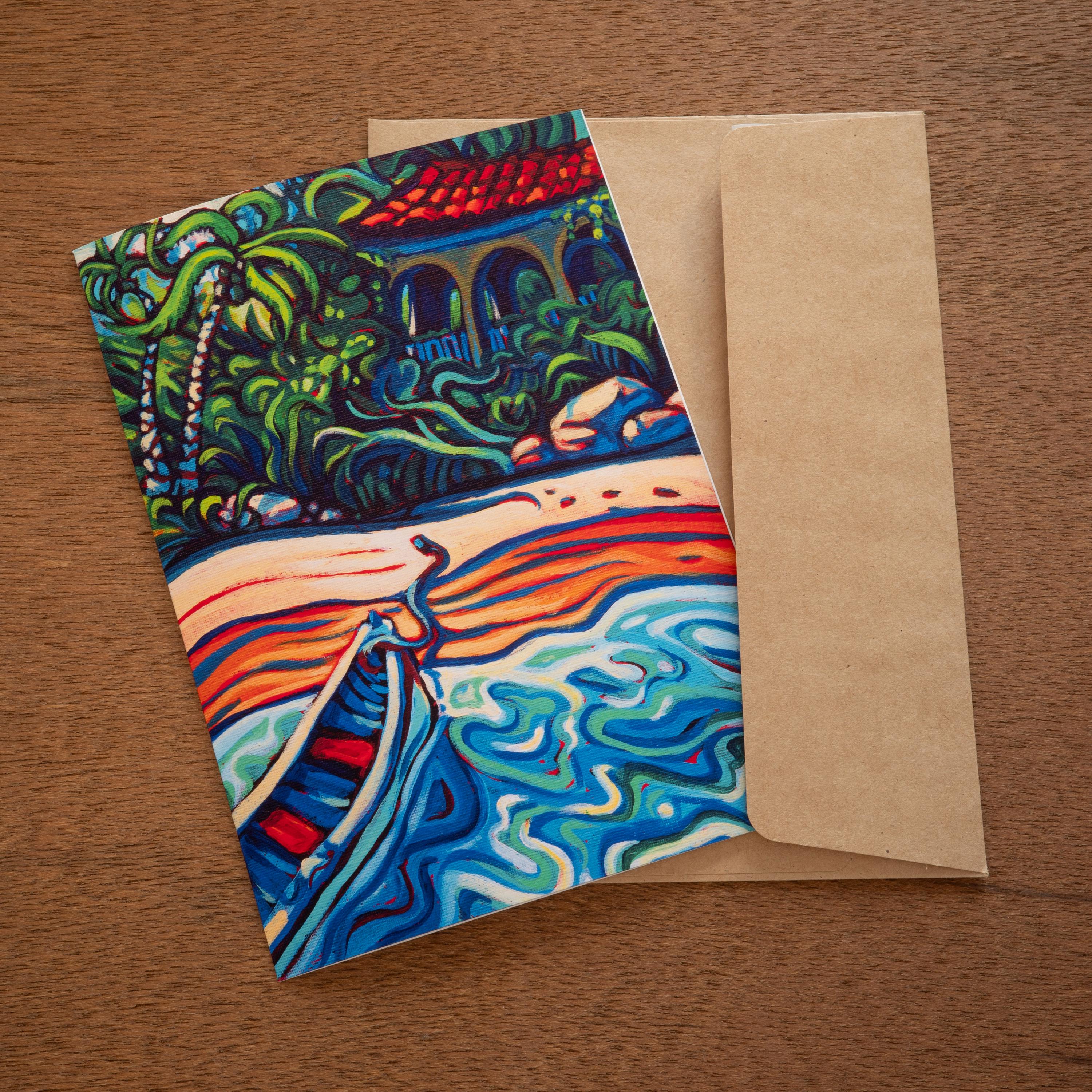 Set of five unique 5" x 7" greeting cards. Each card is a print of one of my original acrylic paintings I did while visiting Peurto Vallarta, Mexico.